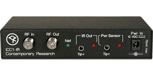 The Contemporary Research ICC1-IR provides control over power, volume, and NTSC/HDTV channel tuning on your IR format TVs, LCDs, and Plasma displays. This cost effective and compact unit allows you to operate using your existing CATV RF wiring. Access and control up to 4000 displays using one of the Contemporary Research head units. Includes 12 VDC power supply, CC-IRE IR emitter, CC-HSD scan sensor, RF loop cable, and mounting kit.