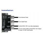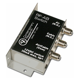 The Contemporary Research RF-AB RF Switch is a self-terminating remote controllable RF A/B switch. When used with the CR 232-ATSC+1 HDTV Tuner, the RF-AB will automatically switch between Air and Cable RF feeds. The included 3.5 mm cable connects the RF-AB to the A/C jack on the back of the tuner. As a general-purpose RF A/B switch, the RF-AB correctly handles RF signals by terminating the RF feed when it is switched off. In addition, the switch will default to the Cable input when there is no DC power.