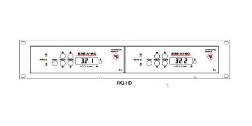 The Contemporary Research RK2-HD is designed to mount two 232-ATSC HDTV Tuners side-by-side in a standard 19" rack. Tuners with occupy 2RU.